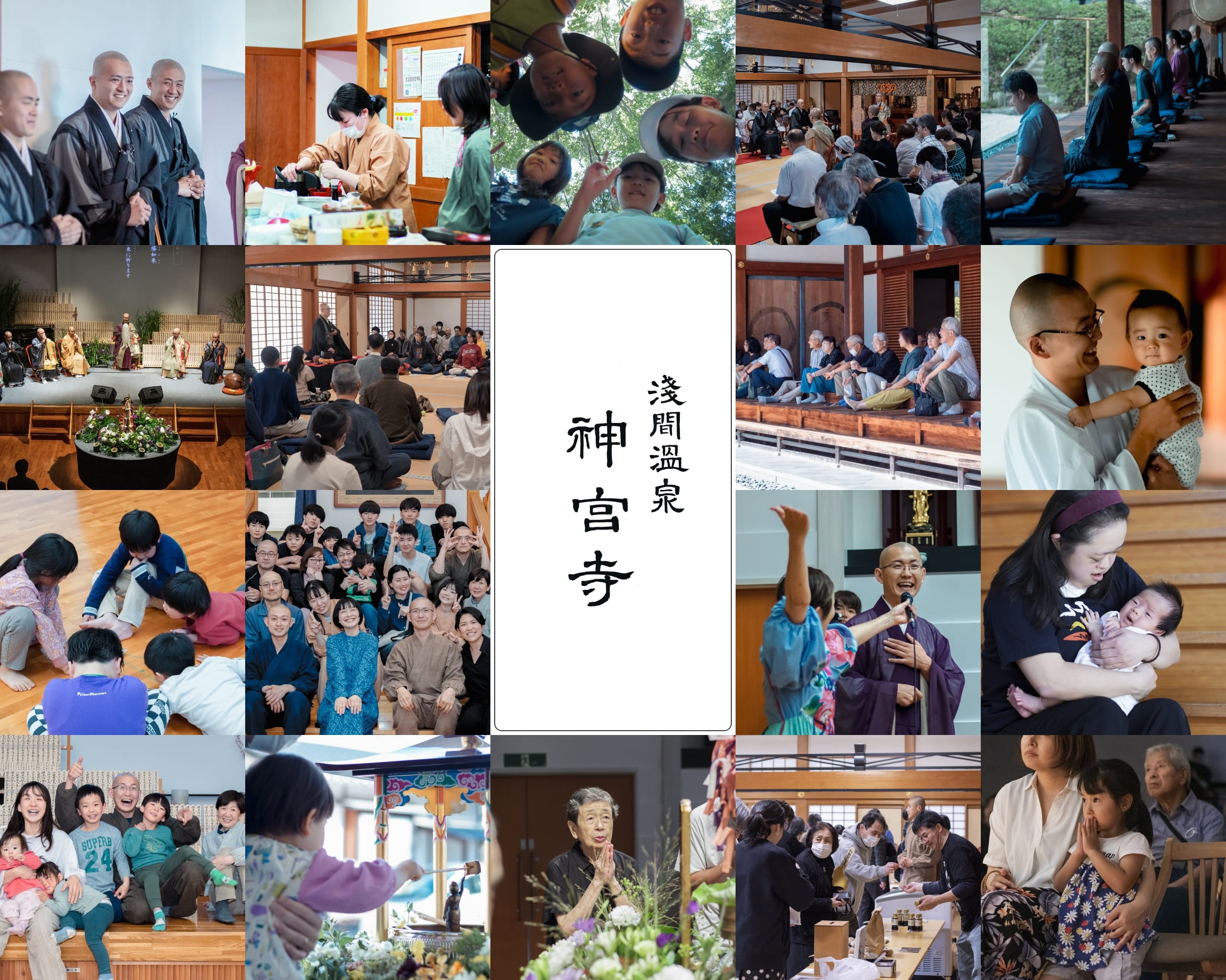 「お寺でこんなことをしてもいいの?」 そんな驚きが、神宮寺の日常には溢れています。坐禅会や法要だけでなく、みんなで平和を祈るコンサート、 子どもたちの笑い声が響くキャンプ。 私たちは、お寺がもつ無限の可能性を信じています。