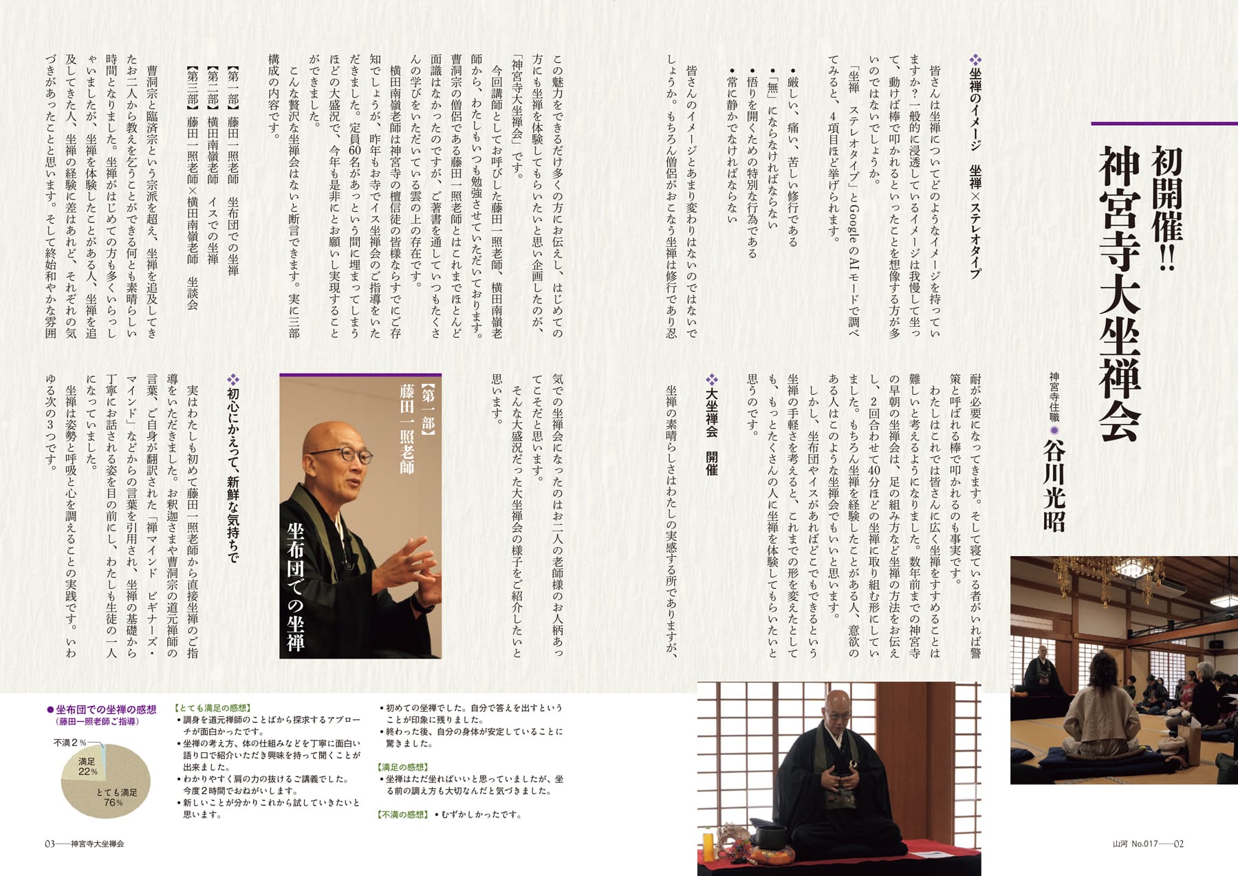 年二回発行している神宮寺報「山河」では、お寺での出来事、多彩な執筆陣による連載などをご覧いただけます。