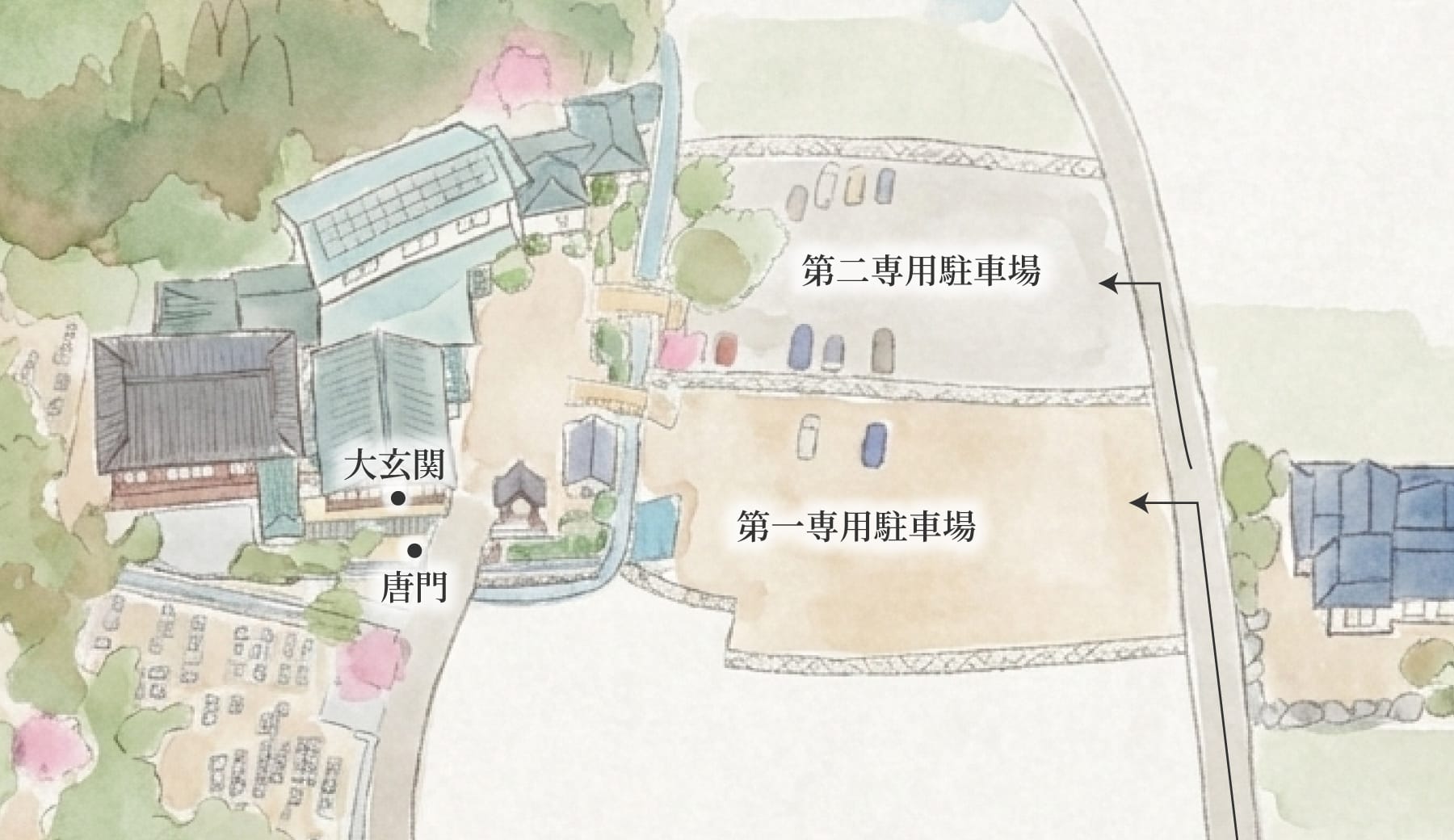 駐車場と唐門のご案内